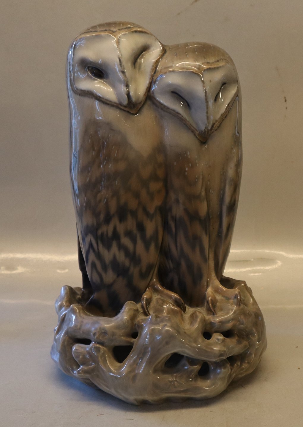 Beskrivelse: Kgl. fuglefigur fra Royal Copenhagen 0283 Ugle par Arnold Krog 33,5 cm I hel og fin stand