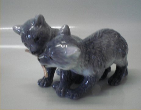 Beskrivelse: Kgl. figur fra Royal Copenhagen 0445 Kgl. To polarræveunger 11 cm (1249445) Mor og Barn dyrefigurer serien 16 x 10 cm I hel og fin stand