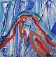 445946 Ivy Lysdal, f 1937. Dansk keramiker og kunstmaler. Gouache på karton. Abstrakt modernistisk maleri. Koloristisk palette. Sent 1900-tallet.
