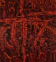 469172 Ivy Lysdal, f 1937. Dansk keramiker og kunstmaler. Mixed media på karton. Stort abstrakt modernistisk maleri. Koloristisk palette. Sent 1900-tallet.