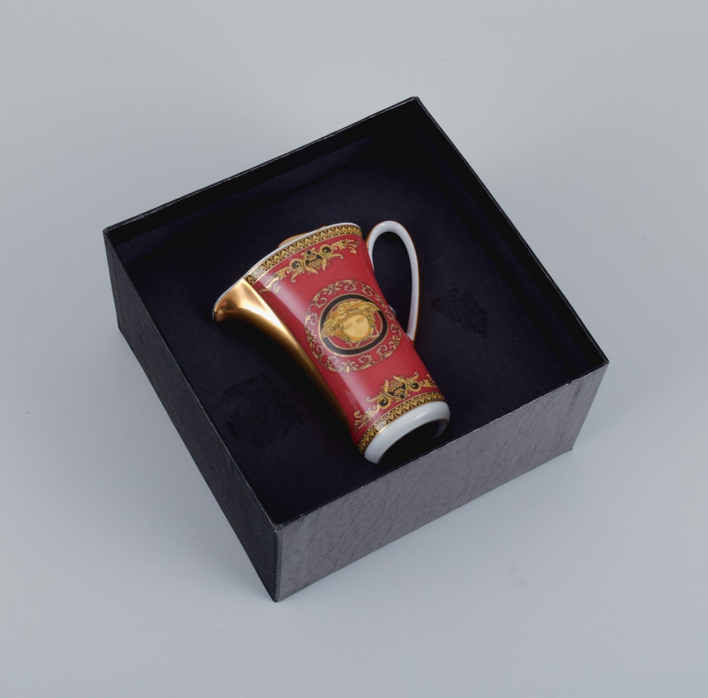 Gianni Versace for Rosenthal, porcelain miniature jug. "Medusa". In perfect condition. 2000s. Marked. Original gift box included. Dimensions: H 10.0 x D 8.5 including handle and spout.
