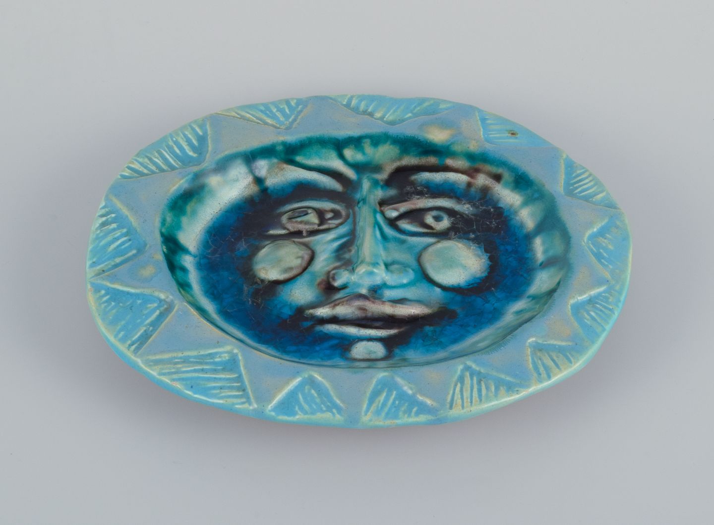 Elio Schiavon (1925-2004), Italy. Unique ceramic bowl with blue glass inlay at the bottom.