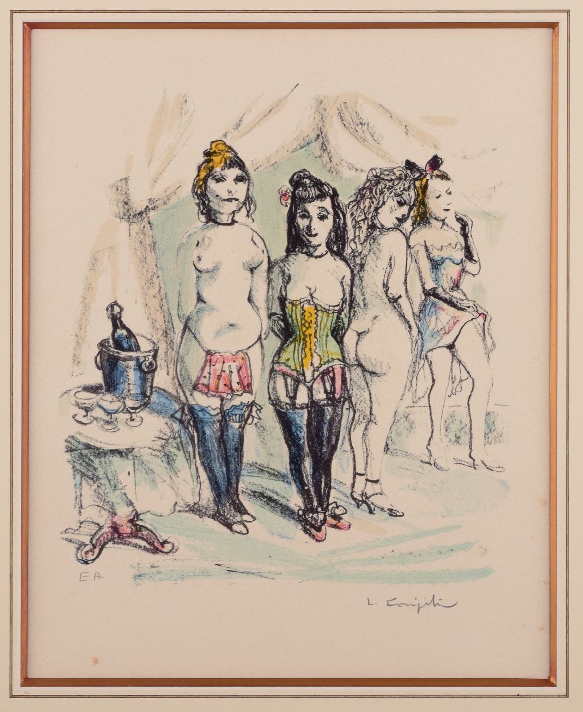 Léonard Tsuguharu Foujita (1886–1968), well listed Japanese/French artist. Color lithograph on paper. E. A. = Artist´s edition.