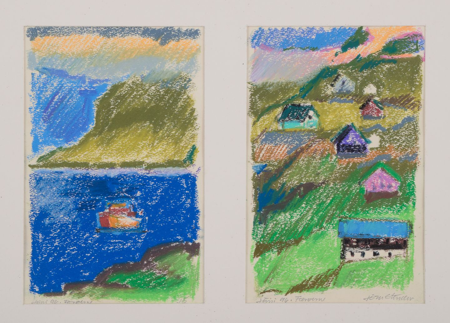 Two landscape scenes with houses from the Faroe Islands.