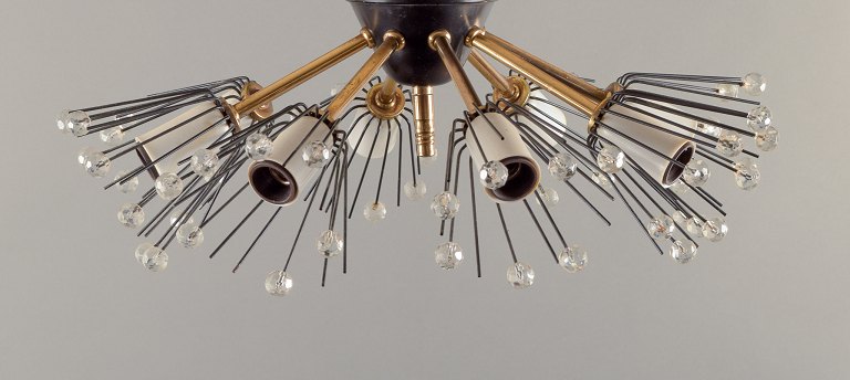Emil Stejnar for Rupert Nikoll, Austria. Eight-armed ceiling lamp in brass, metal, and acrylic prisms. Approximately from the 1960s. Perfect condition. Dimensions: D 46.0 cm x H 17.0 cm.