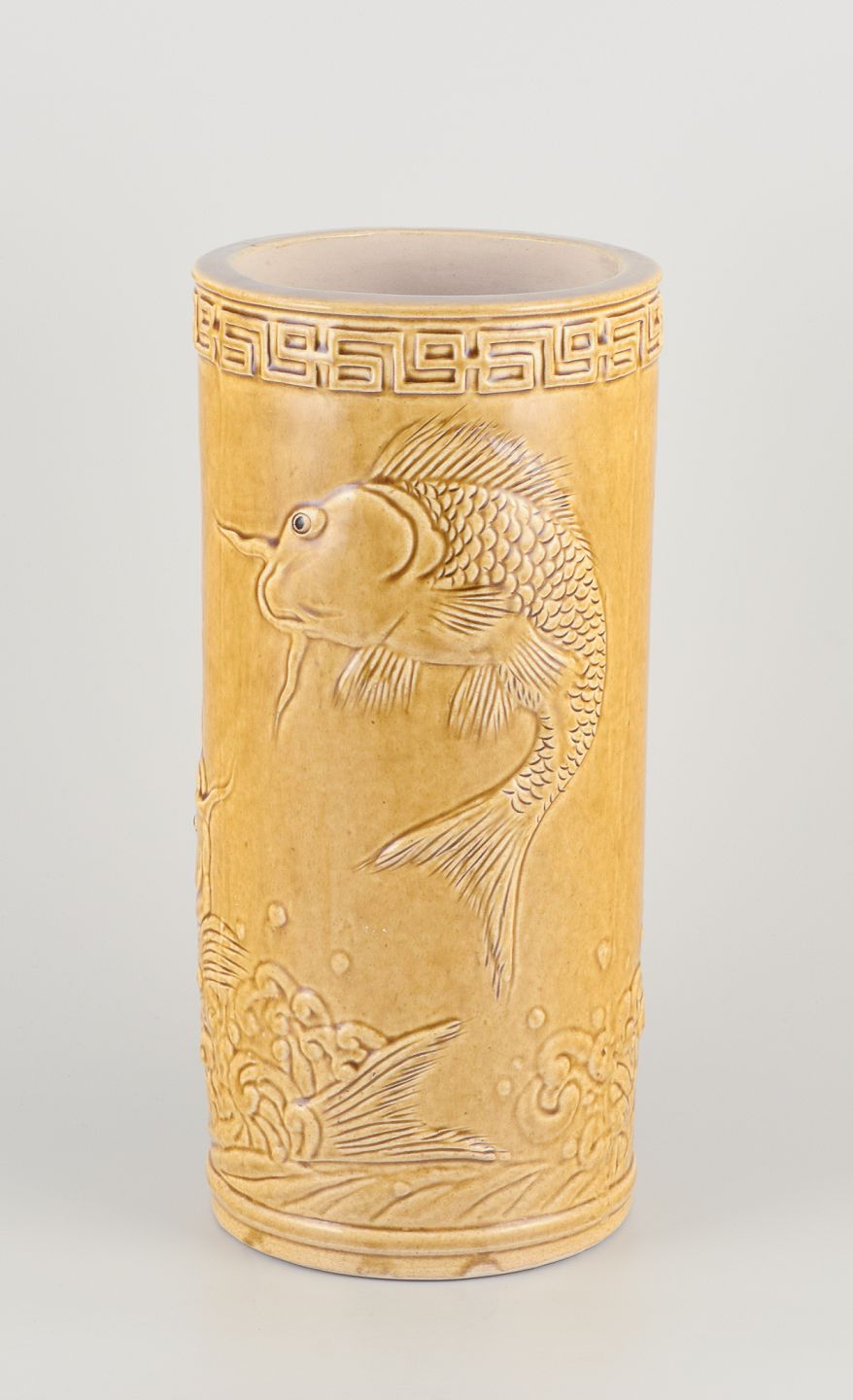 Ochre-yellow glaze. Hand-glazed.