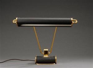 Eileen Gray 1878-1976. Bordlampe, fra 1930-40'erne, udført af messing og bemalet metal. Arm og skærm justerbar. Fabrikeret hos Jumo, Frankrig. H. 35. B. 44 cm.