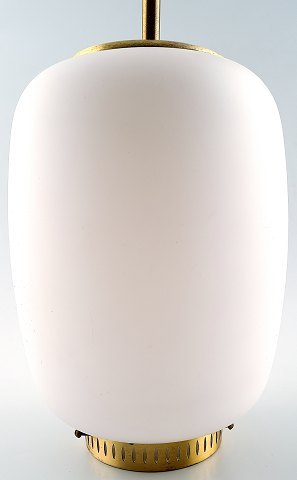 Bent Karlby: "Kina-Lampen". Et par pendler af mat opalglas med messingmontering. Udført hos Lyfa i 1950erne. Højde inkl. monteringer 23 cm. Diam. 15 cm. I god stand.
