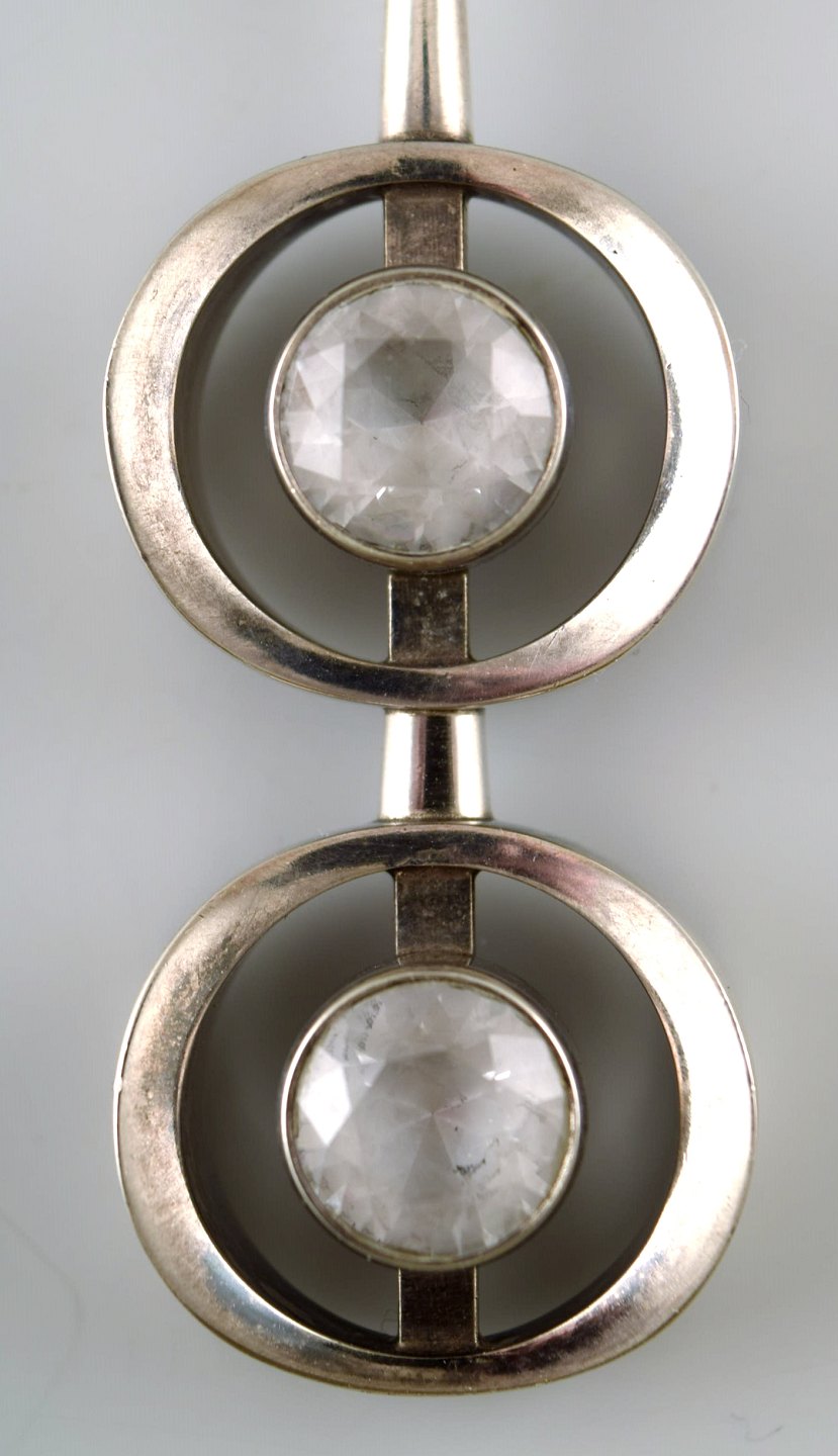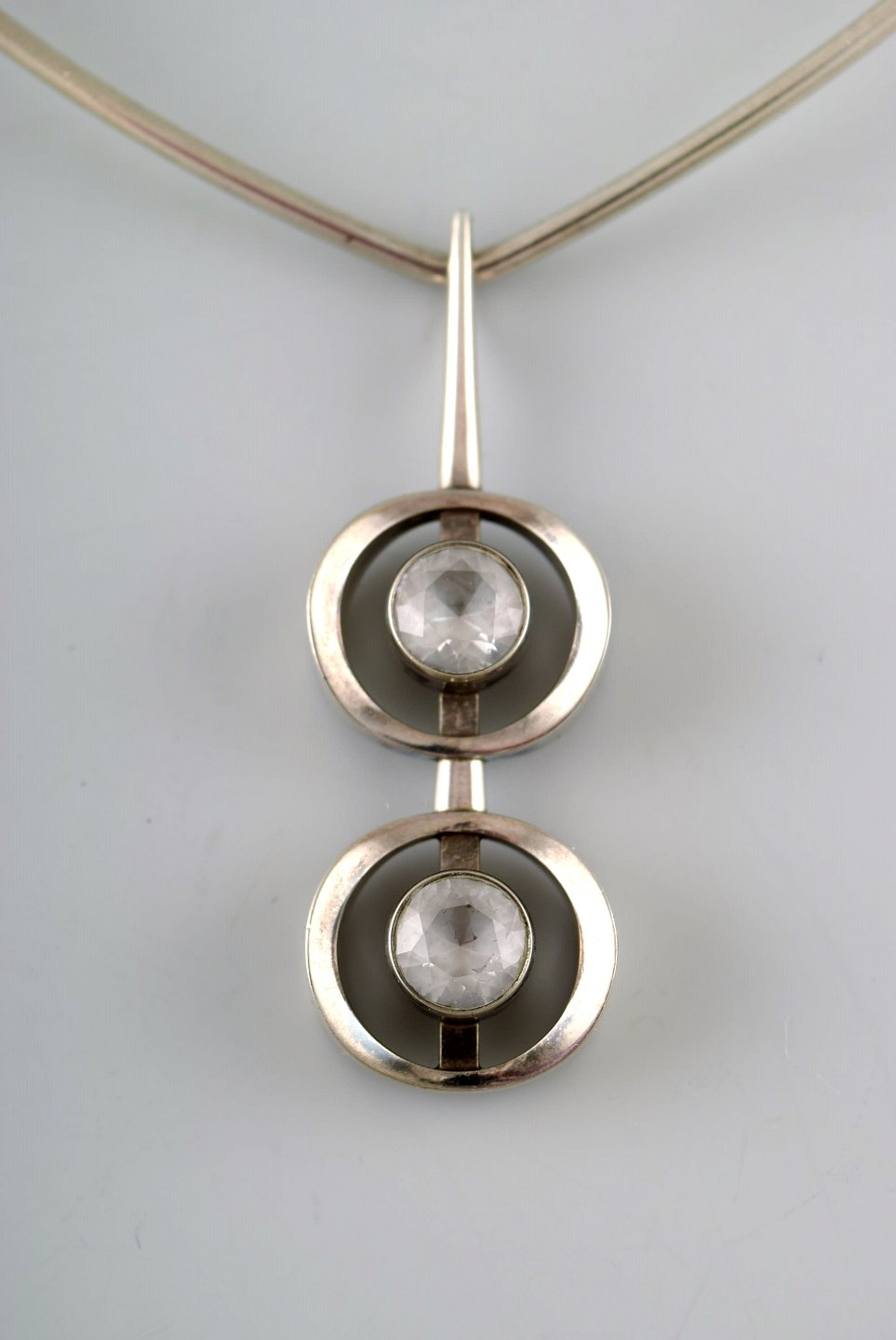 N.E. From halssmykke af sterlingsølv, vedhæng med to bjergkrystaller. Dansk design 1970´erne.