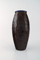 Kähler, HAK, glaseret stentøjsvase i moderne design. 1930/40´erne. Kohornsteknik. Smuk mørkeblå/brun glasur. Stemplet. Måler : 30,5 cm x 15 cm. I perfekt stand.