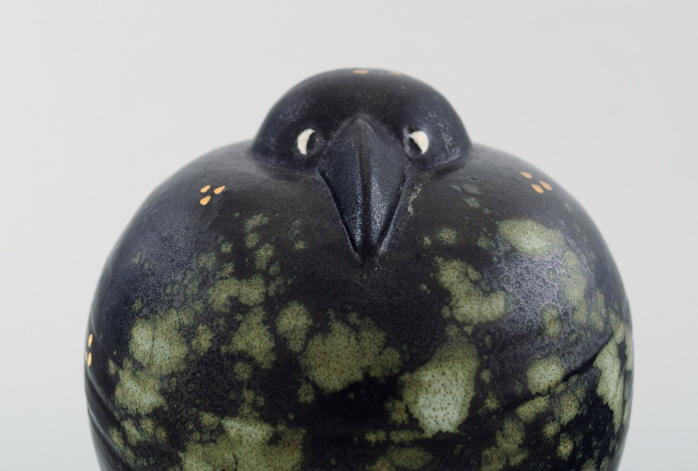Sjælden figur, Lisa Larson for Gustavsberg. Sort fugl i glaseret keramik på træsokkel. Signeret. Måler: 16,5 cm x 11 cm. I perfekt stand.