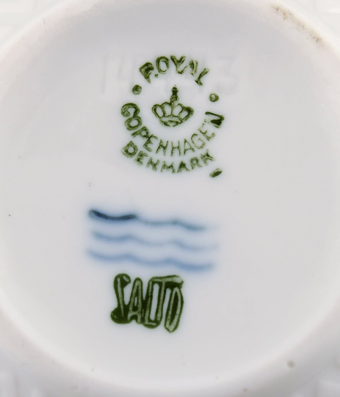 Royal Copenhagen Salto Stel, Hvidt. Thekop med underkop. Underkoppen måler: 15.5 cm. Koppen måler: 10 x 5,5 cm. I flot stand. 1. sortering.