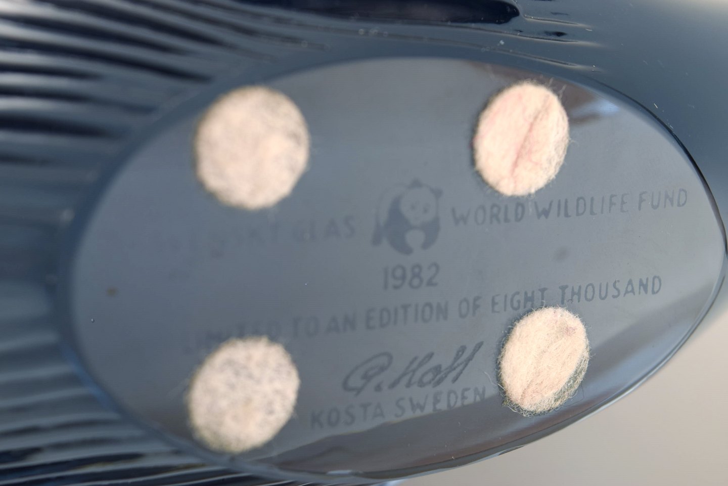 Paul Hoff for Svenskt glas. Fem figurer i form af blåhval, hvalros sæl, isbjørn og okse. udført i kunstglas. WWF. Midt 1900-tallet. Største måler: 19 cm x 7,5 cm. I perfekt stand. Stemplet.