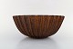 Arne Bang. Bordskål af stentøj med kanneleret korpus. Dekoreret med smuk spættet glasur i rødbrune nuancer. 1930'erne. Signeret i monogram. Nr. 189. Måler: 26 x 10 cm. I perfekt stand.