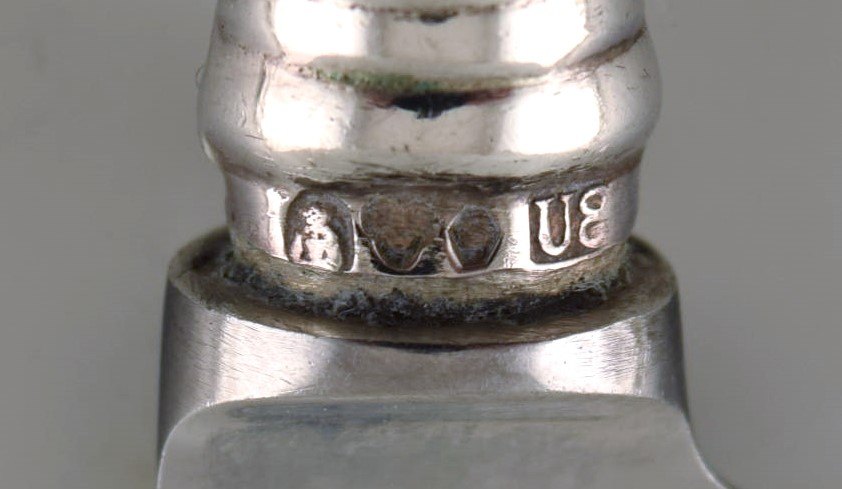Hallbergs Guldsmeds Ab, Sverige. Sæt på fire "Olga" smørknive i sølv og rustfrit stål. Dateret 1946. Måler: 17,5 cm. Stemplet. I flot stand.