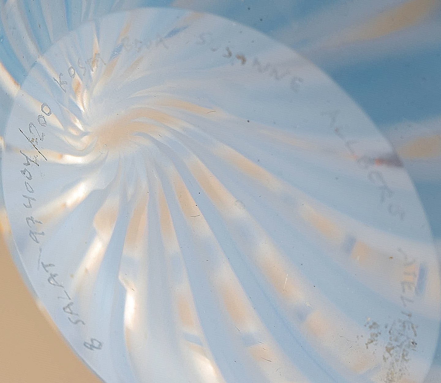Susanne Allberg for Kosta Boda. Stor vase i lyseblåt mundblæst kunstglas. Sent 1900-tallet. Måler: 44 x 11,5 cm. I flot stand. Indridset signatur.