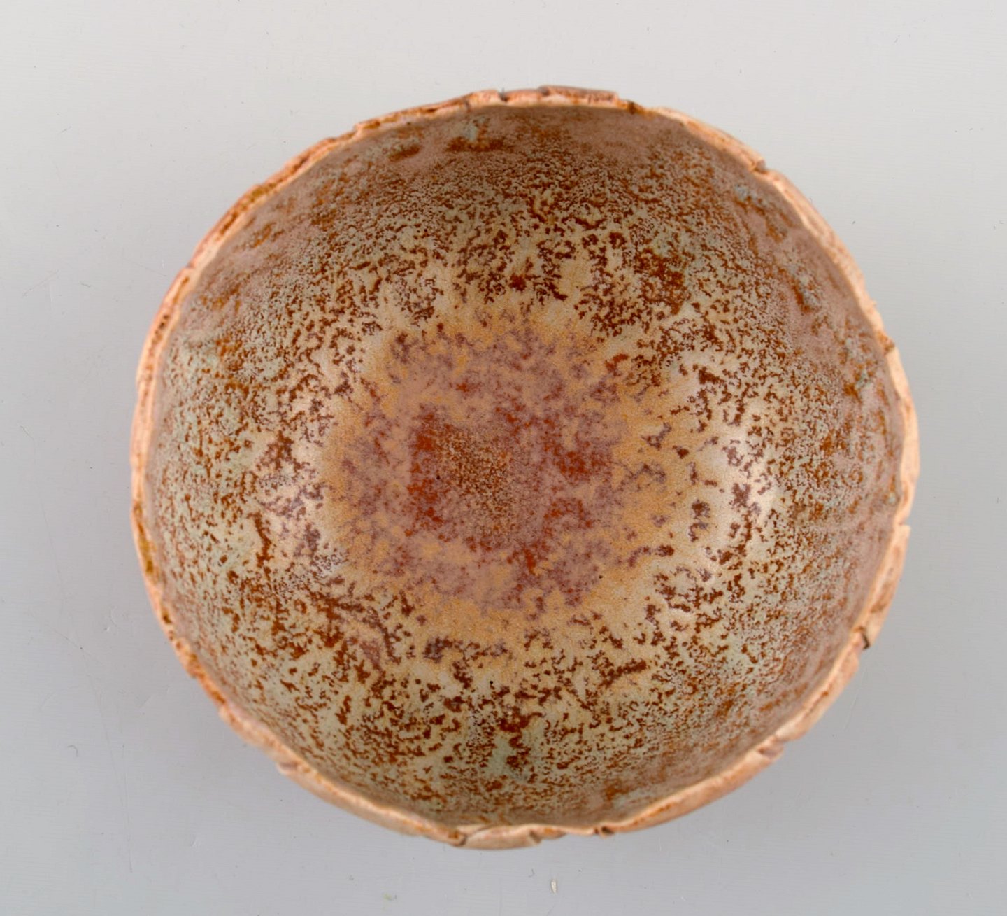 Lizzie Schnakenburg Thyssen (født 1925), dansk kunstner og keramiker. Unika skål i keramik. Dateret 1986. Måler: 12,5 x 5,5 cm. I flot stand. Signeret og dateret.
