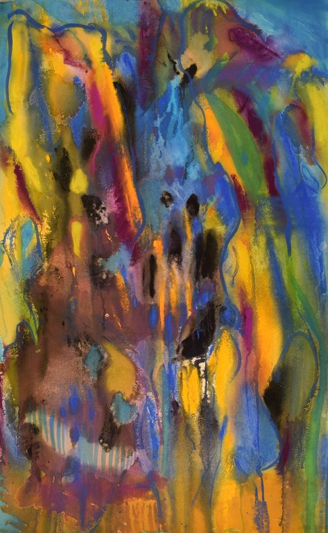 Ivy Lysdal, f 1937. Dansk keramiker og kunstmaler. Gouache på karton. Abstrakt modernistisk maleri. Koloristisk palette. Sent 1900-tallet.