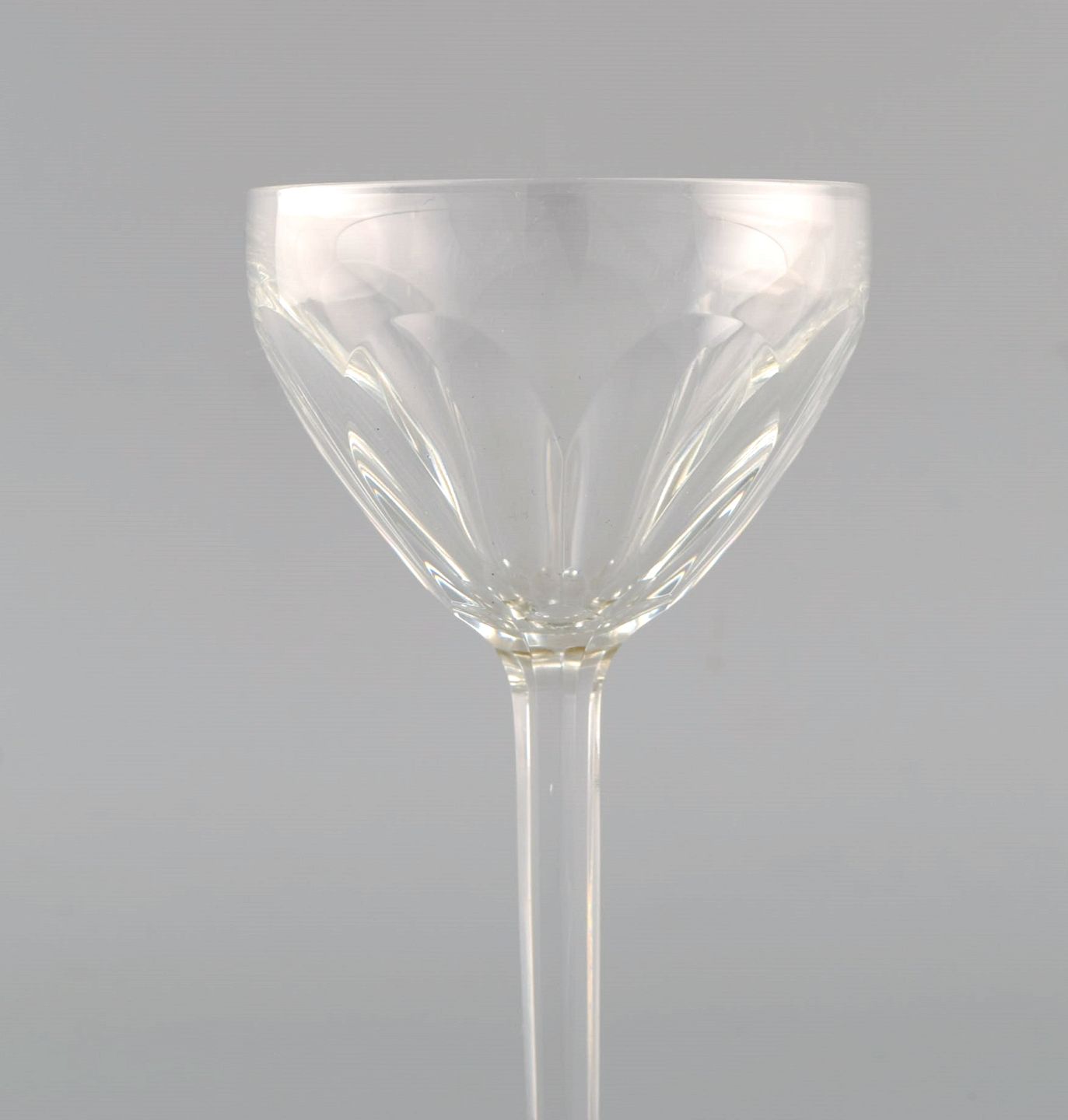 Baccarat, Frankrig. Fem art deco vinglas i klart mundblæst krystalglas. 1930'erne. Største måler: 14 x 7,5 cm. Mindste måler: 13 x 7 cm. I flot stand.