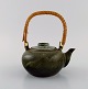 Kinesisk tekande i glaseret stentøj med hank i flet. Smuk spættet glasur i mørkegrønne og turkis nuancer. 1900-tallet.