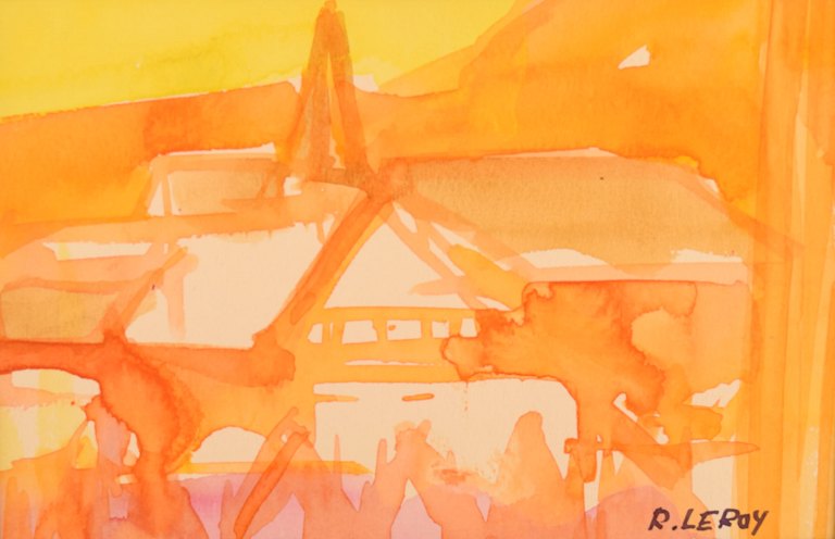 René Leroy (f. 1931), fransk kunstner. Akvarel på papir. 1980'erne. Lysmål: 15 x 10 cm. Totalmål: 24 x 18 cm. I flot stand. Signeret.