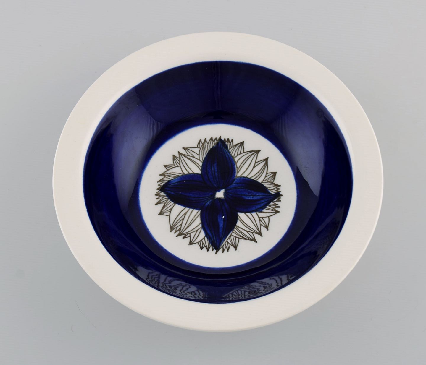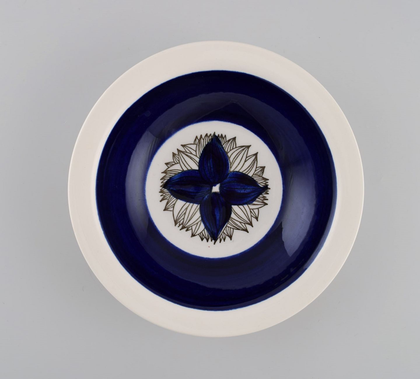Olle Alberius for Rörstrand. Tre Pontus dybe tallerkener i glaseret stentøj med håndmalet blomstermotiv. Svensk design, 1960'erne. Måler: 20 x 4,5 cm. I flot stand. 1. sortering.