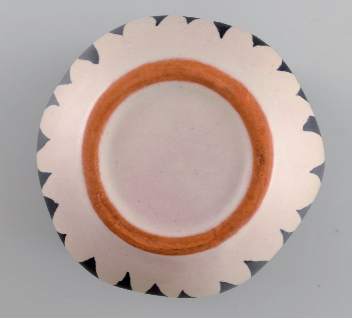 Europæisk studiokeramiker. Unika vase med bølget kant i glaseret keramik. Stribet design, 1960/70'erne.