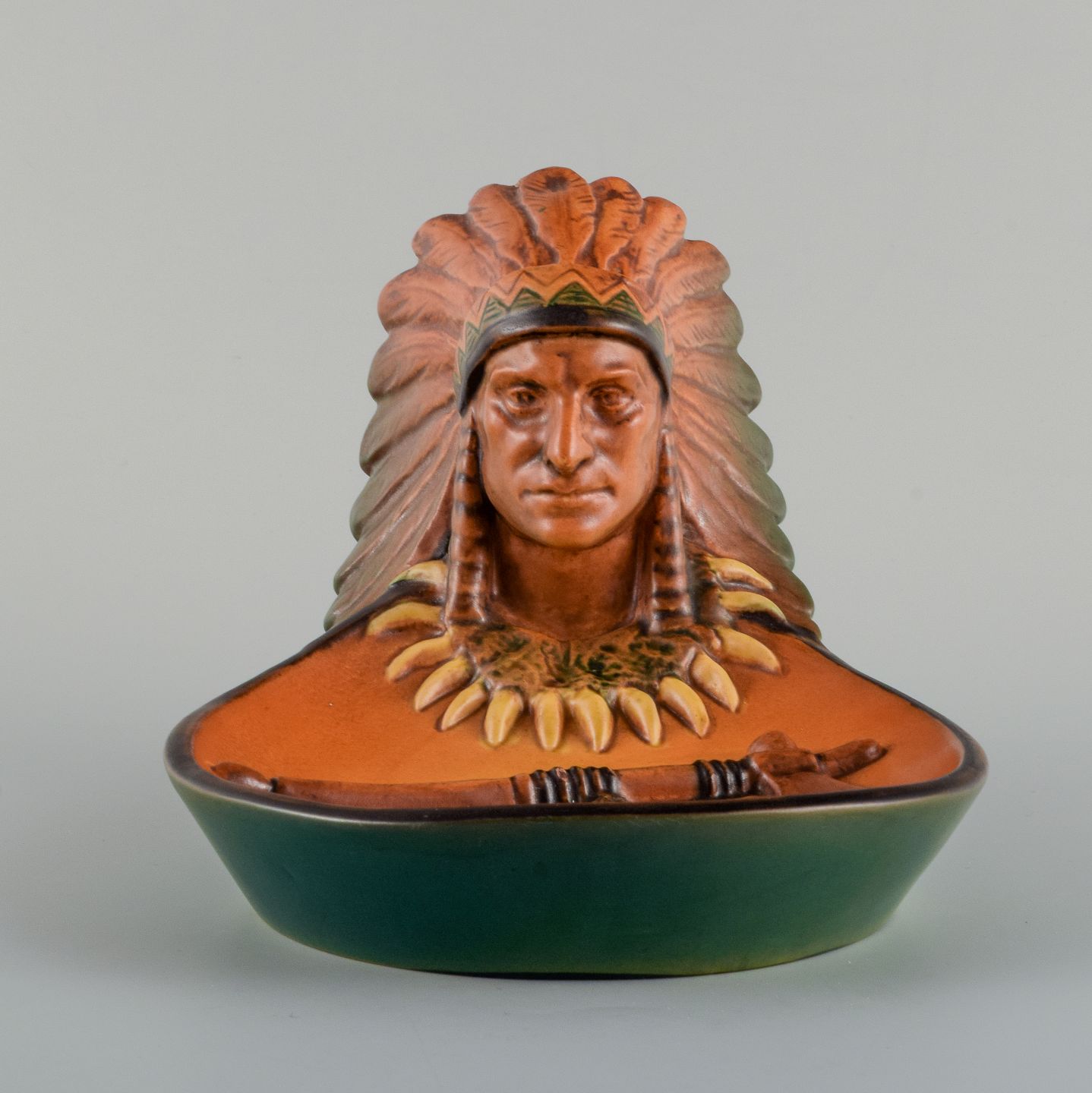 Ipsens enke, skål i glaseret keramik med håndmalet høvding.