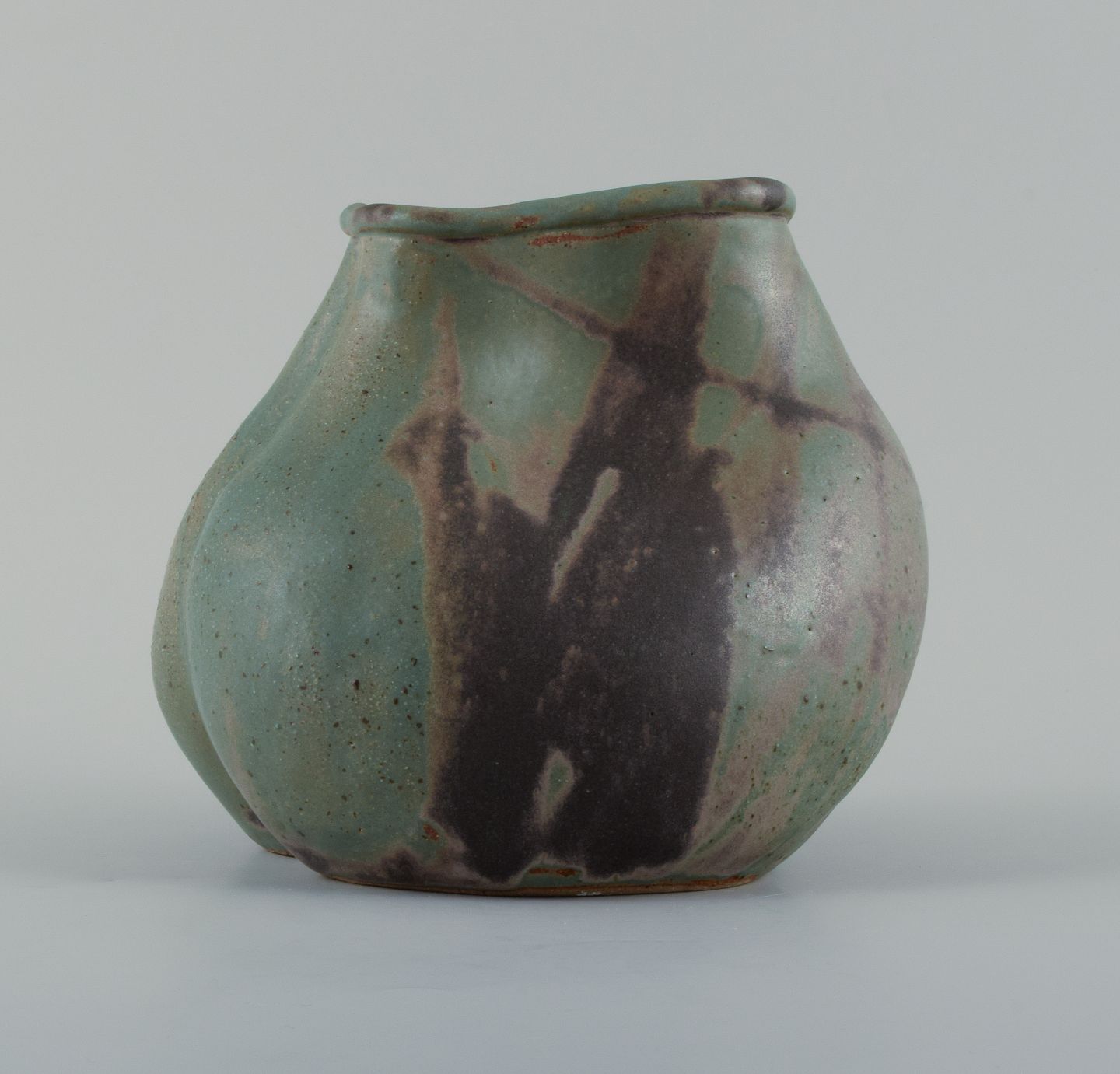 Unique seedpod vessel made from stoneware clay, with matte blue and brown glaze.