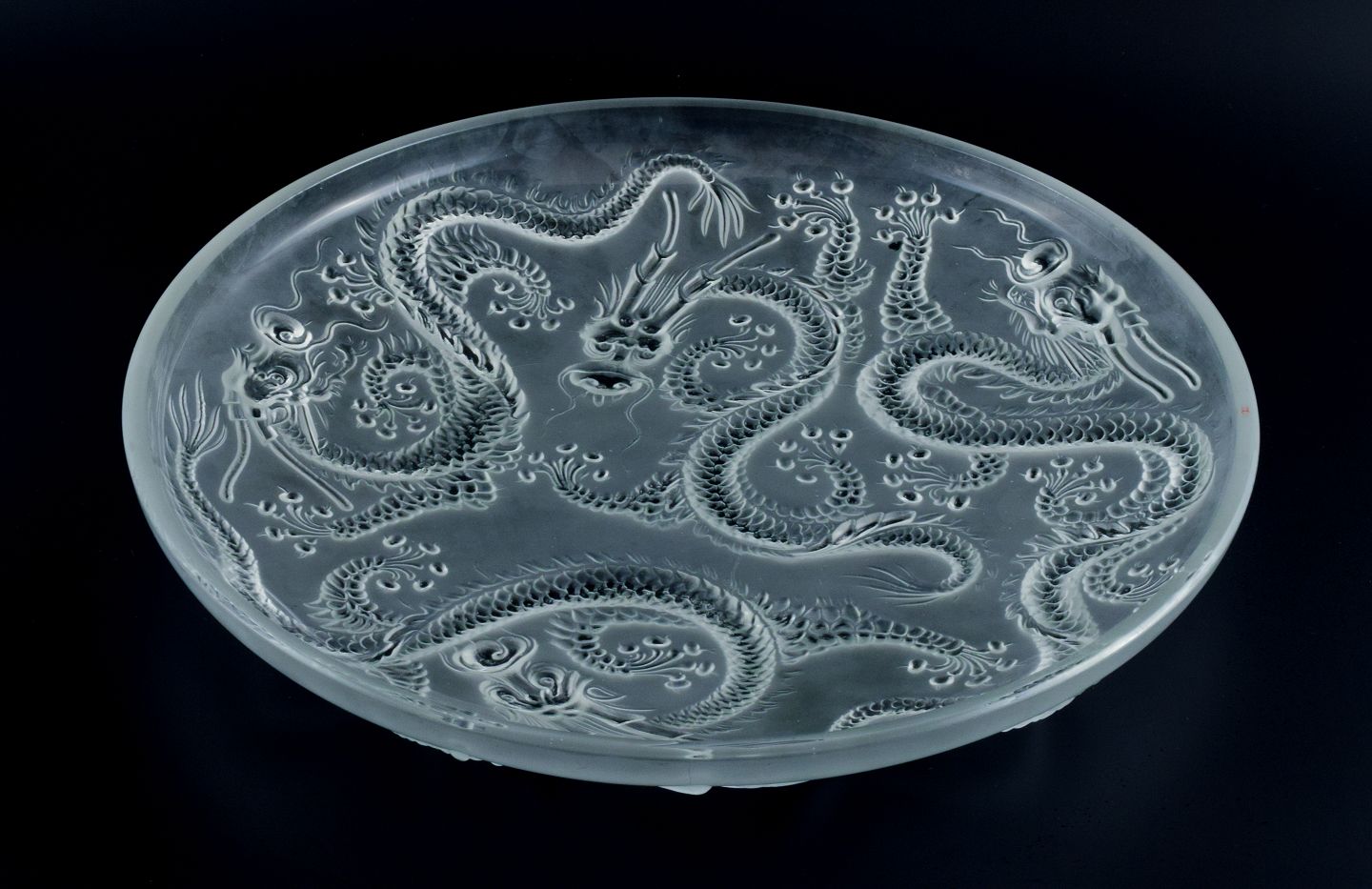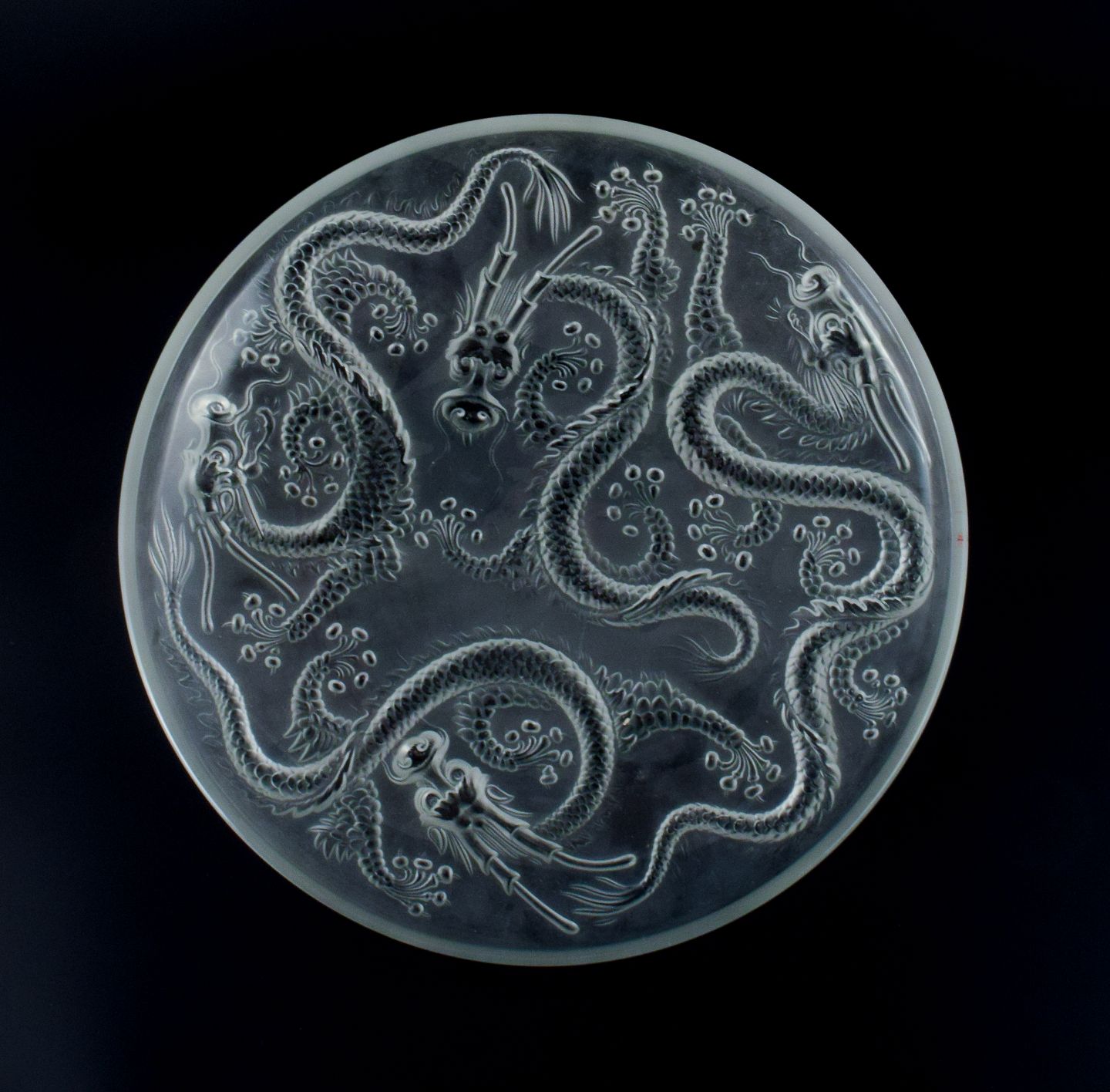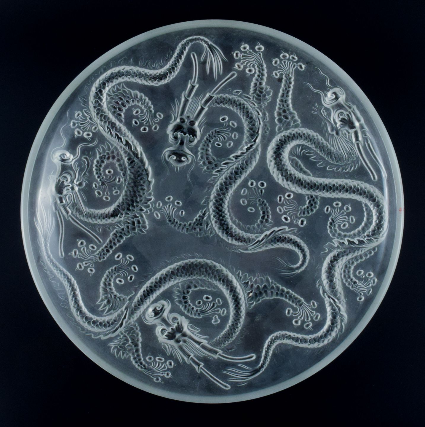 Josef Inwald, large art glass bowl in Barolac glass, designed with dragons in oriental style.