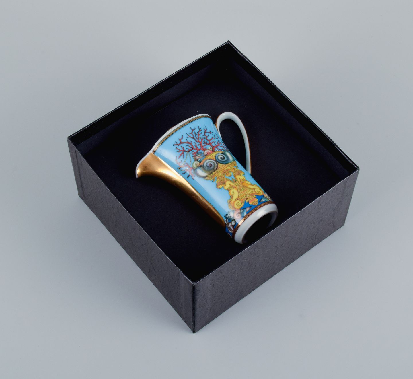 Gianni Versace for Rosenthal, porcelain miniature jug. "Tresors de la Mer". In perfect condition. 2000s. Marked. Original gift box included. Dimensions: H 10.0 x D 8.5 including handle and spout.