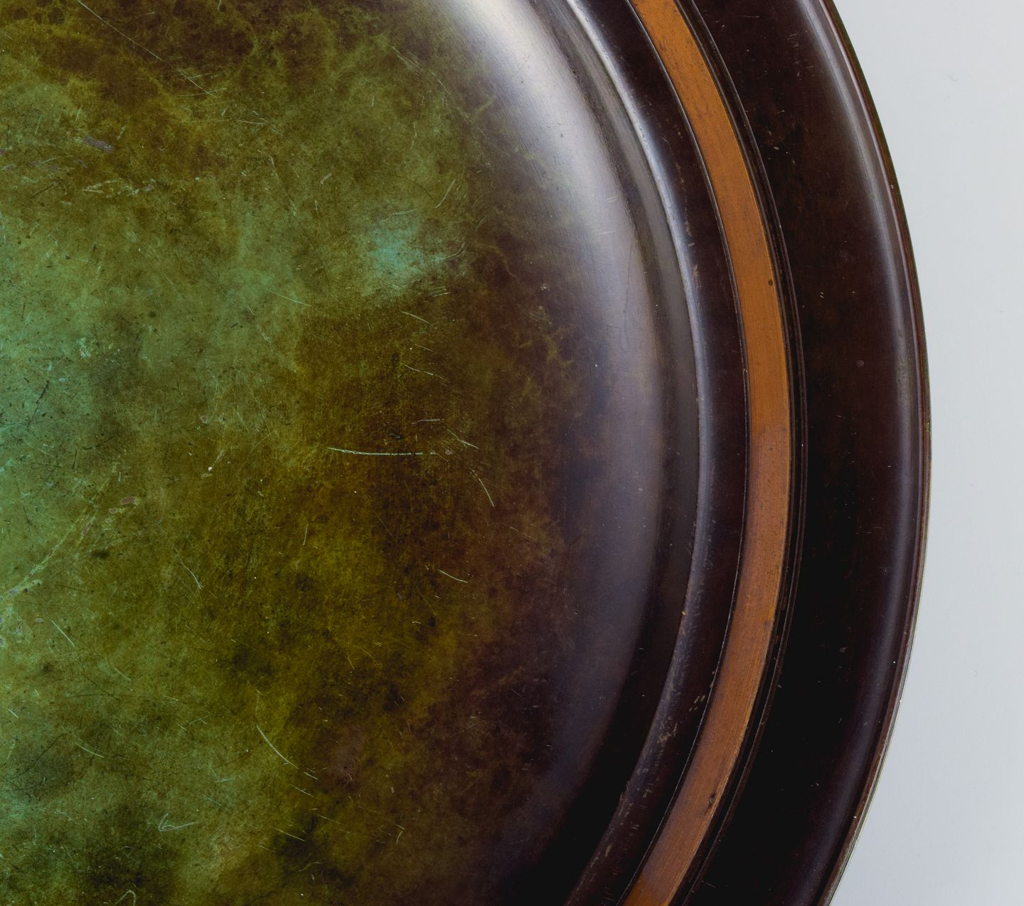 I flot stand med god patina, ældre indridset inskription ”Tak for god hjælp”.
