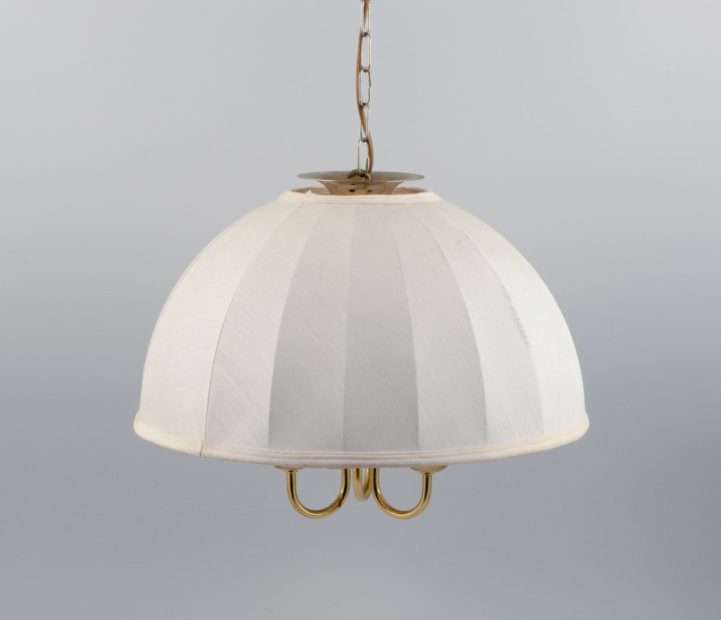 Josef Frank for Svenskt Tenn, loftslampe i metal og stof. Klassisk svensk design. Midt 1900-tallet. I god stand med mindre brugspræg. Mærkat. Mål: H 30,0 (uden ophæng) x D 45,5 cm. ophæng minimum 200 cm.