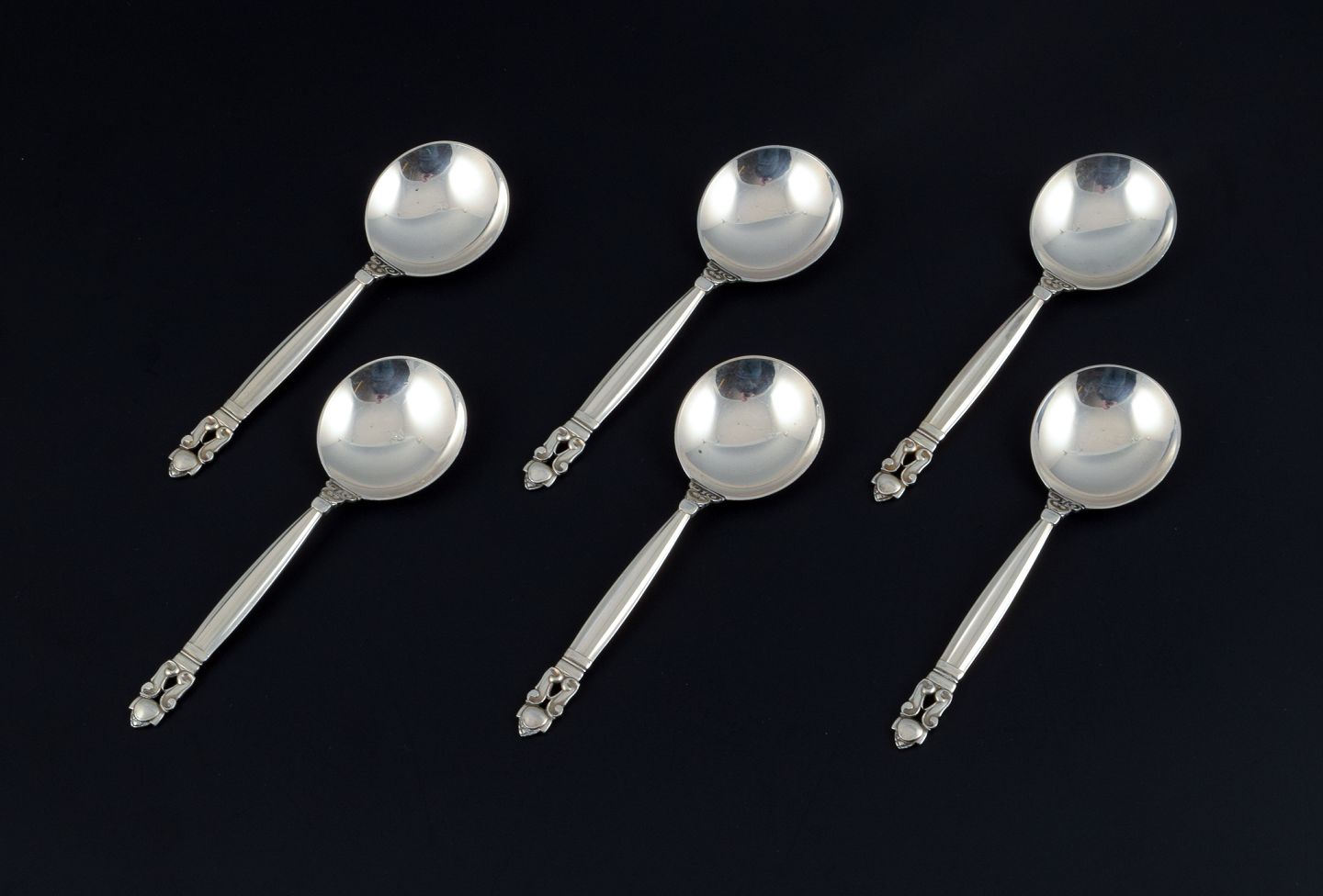 Georg Jensen, Acorn, six bouillon spoons in sterling silver.