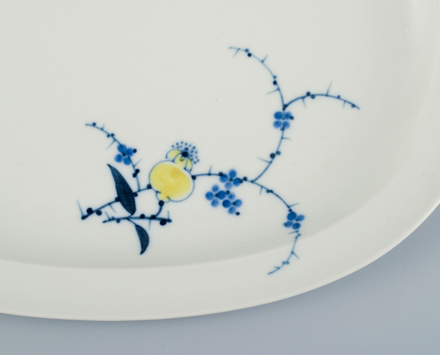 Johannes Hedegaard for Royal Copenhagen, Rimmon, ovalt fad. Modelnummer: 46/14803. 1969-1974. I perfekt stand. Anden sortering. Stemplet. Mål: B 34,5 x D 27,5 x H 3,5 cm.