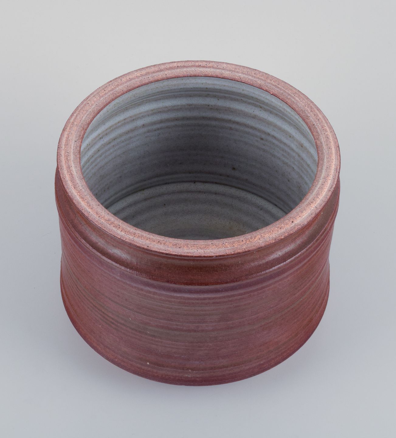 Mogens Nielsen, Nysted, stor håndlavet lågkrukke i keramik med glasur i brune toner. 1978. Signeret. Perfekt stand. Mål: H 19,7 cm. x D 21,0 cm.