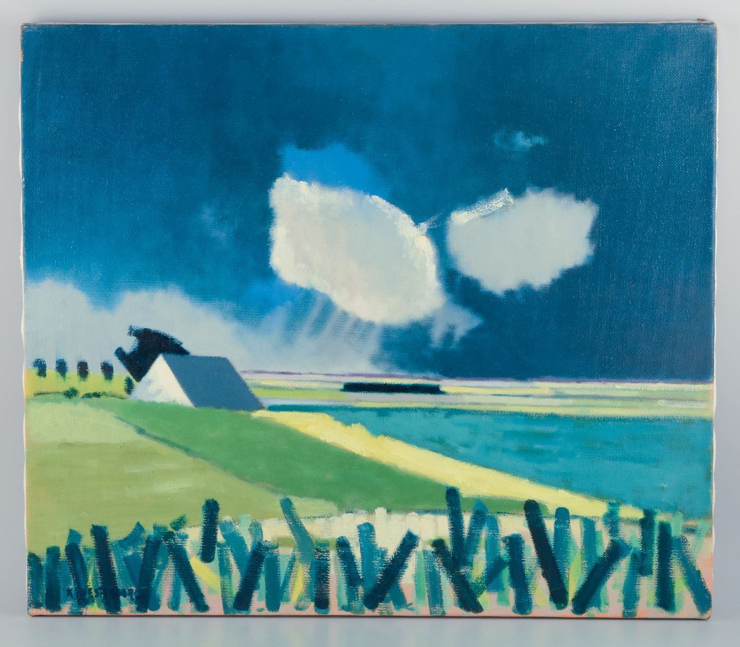 K. Westerberg, also known as Knud Horup, listed Danish artist, oil on canvas. Modernist style. Summer landscape. 1970s. Signed. In perfect condition. Dimensions: W 70.0 cm x H 60.0 cm.