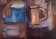Peder Rosenstand, dansk maler. Olie på lærred. Modernistisk stilleben med kande. Signeret og dateret 1971. Perfekt stand. Lysmål: B 71,5 cm. x H 53,5 cm. Totalmål: B 84,0 cm. x H 66,0 cm.