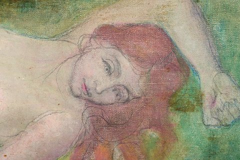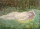 Louis Picard (1861-1940), fransk kunstner, olie på lærred. Portræt af ung smuk liggende nøgen kvinde.