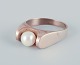 Dansk guldsmed, 14 karat guldring prydet med kulturperle. Modernistisk design.