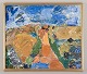 Erik Hallgren (1910-2000), svensk kunstner. Olie på lærred. Abstrakt landskab. Pastose strøg.