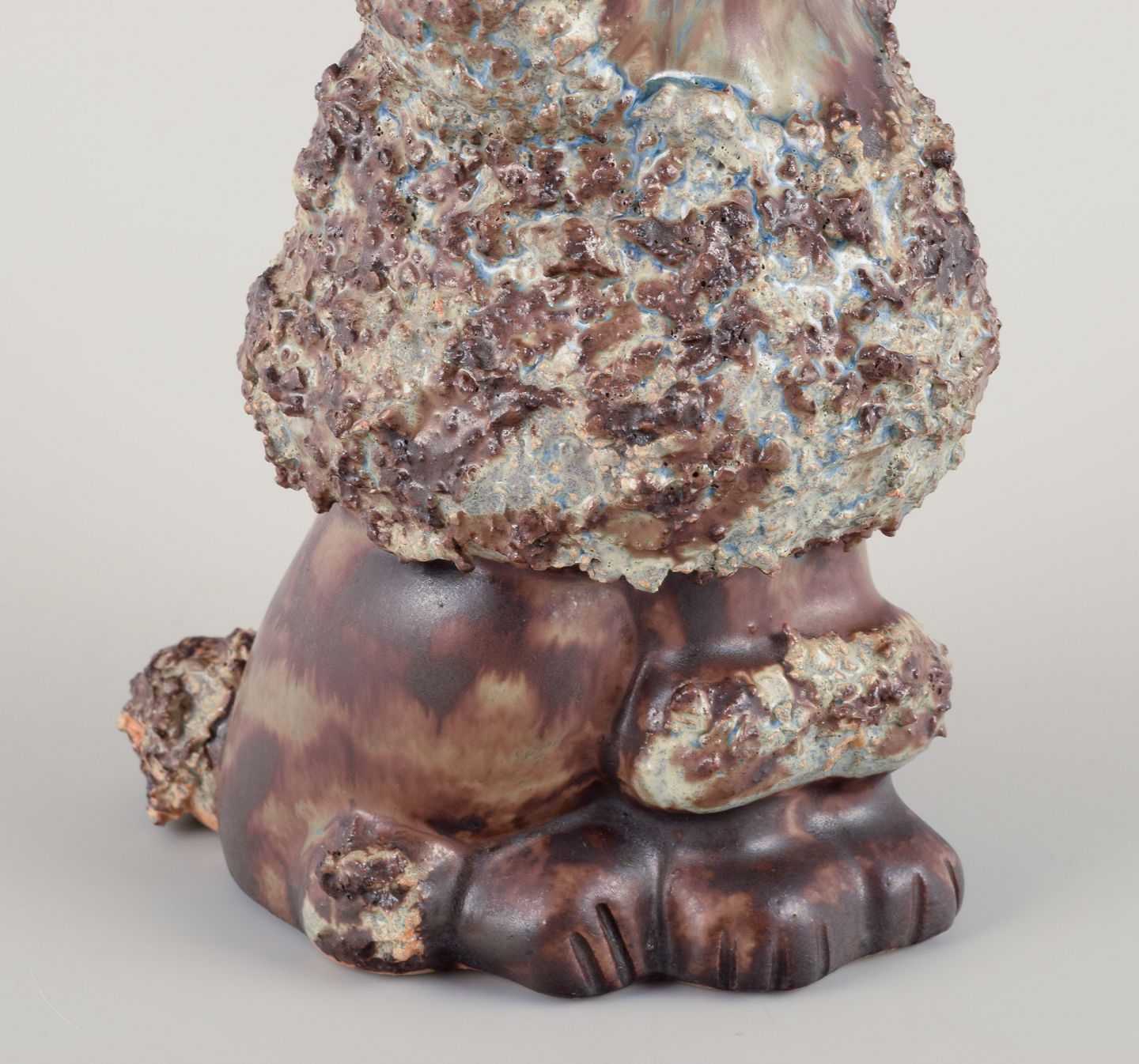 EGO Lidköping, Stengods, Sverige. Keramikfigur af kongepuddel. Glasur i brungrønne toner.