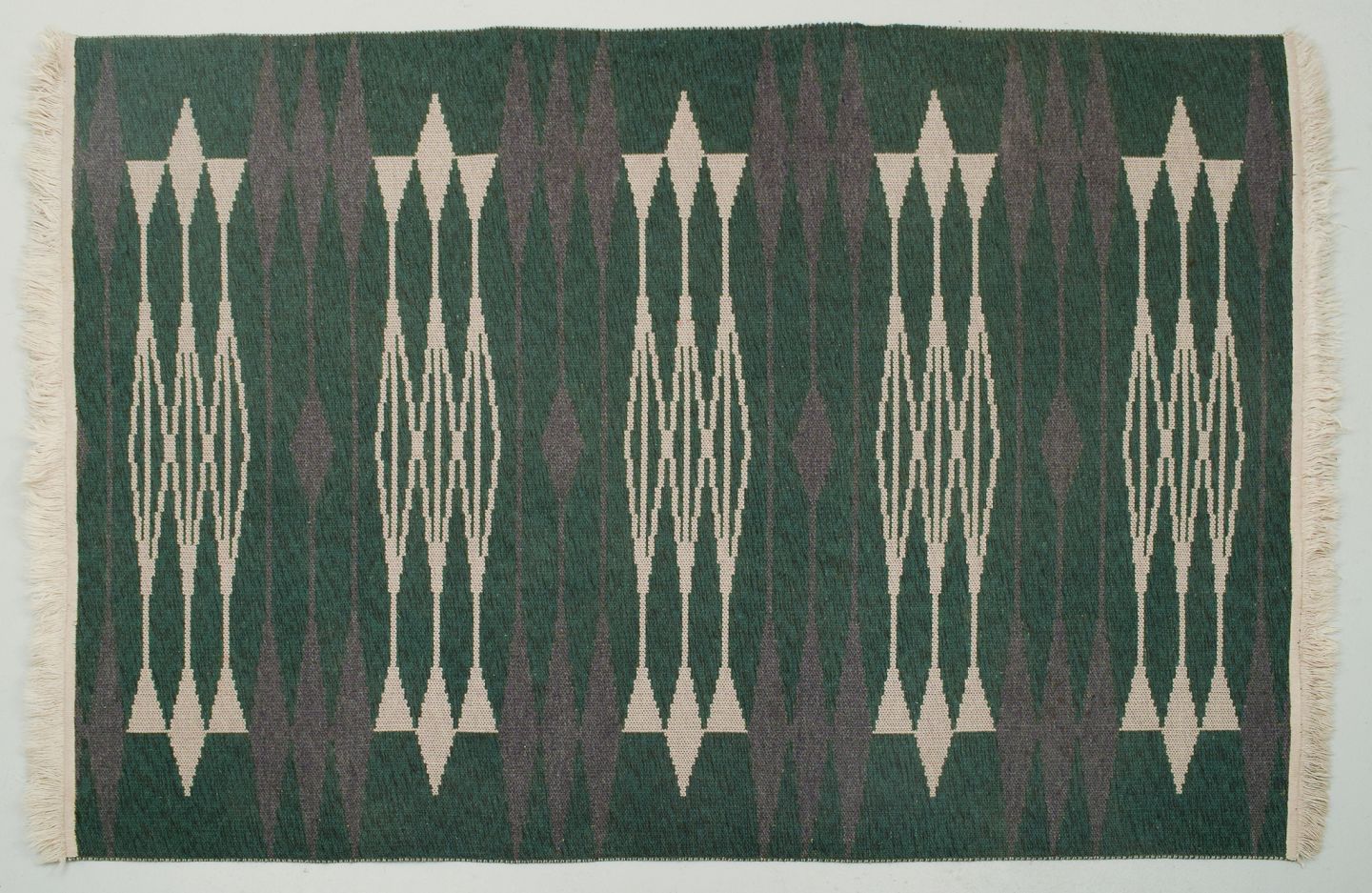 Svensk tekstildesigner. Håndvævet tæppe i ren uld. Modernistisk design.