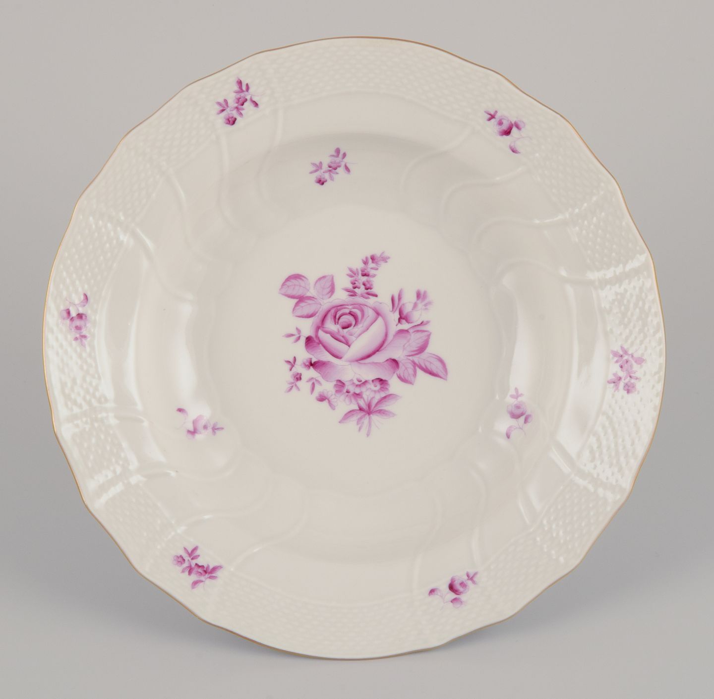 Håndmalet med lilla blomstermotiver. Guldkant.