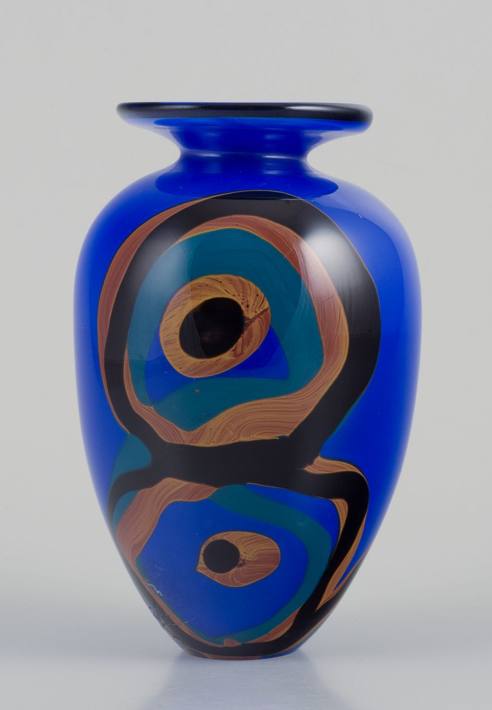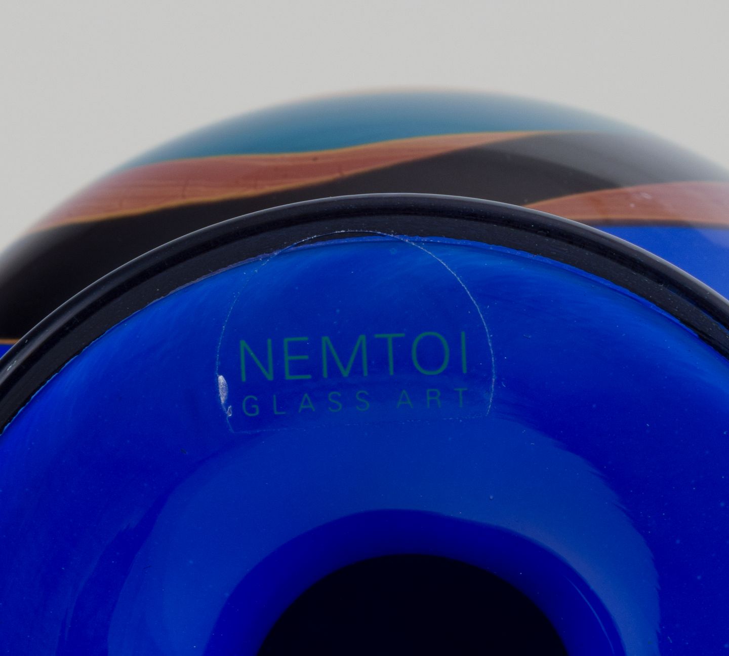 Nemtoi art glass. Håndlavet kunstglasvase. Blå, brune og sorte nuancer.
