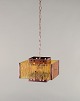 Venhola, Finland. Ceiling lamp in brass and amber-colored glass. Finnish design. 1970s. Perfect condition. Dimensions: D 30.0 cm x H 20.5 cm.