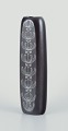 Sven Johnson for Gustavsberg. ”Facett” keramikvase. Motiv af påfugl og blomster i sølvdekoration. Brun glasur. 1970/80’erne. Stemplet. Perfekt stand. Mål: H 25,0 cm. x B 7,0 cm. x D 5,0 cm.
