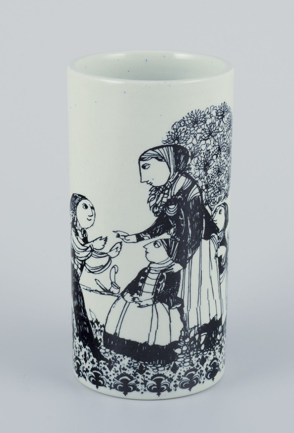 To vaser i fajance. Cylinderformet. Sort dekoration.