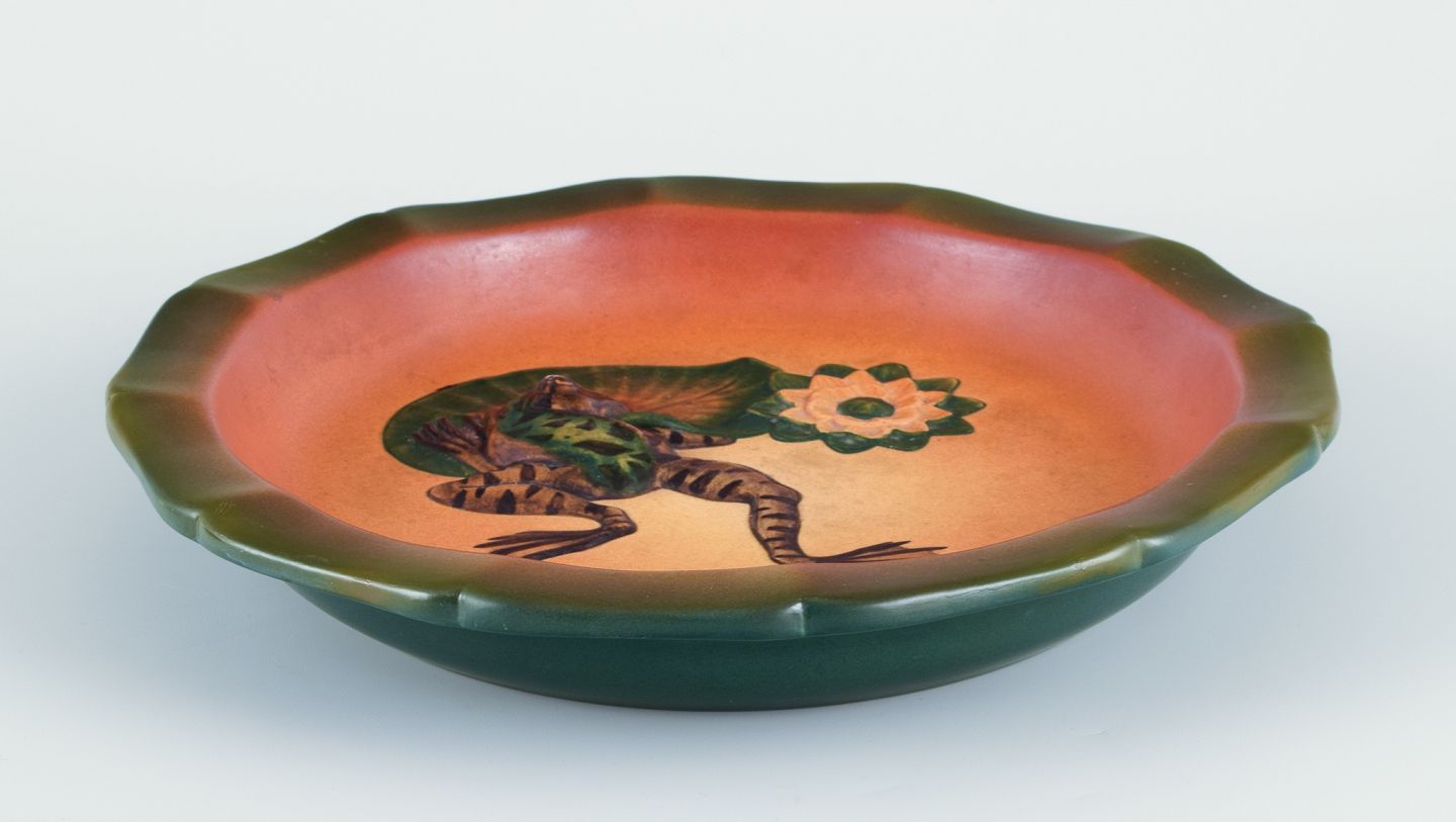 P. Ipsen's, Denmark. Circular bowl with frog in hand-painted glazed ceramic.