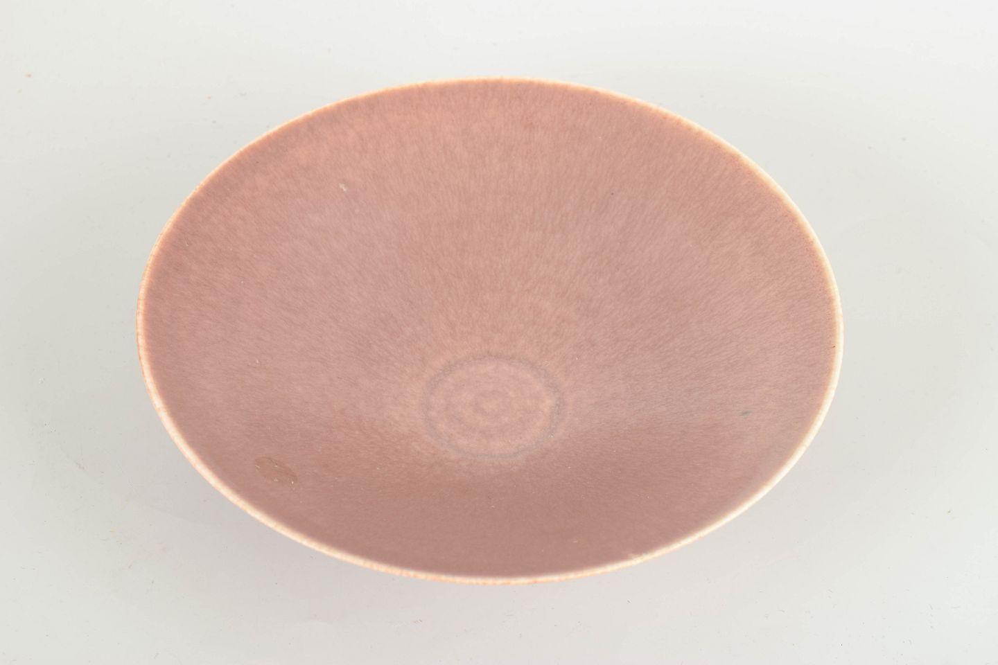 Lav og elegant skål i drejet stentøj med mat, fint nuanceret rosa glasur og subtil organisk form – et karakteristisk udtryk for svenske præ- eller værkstedsgrupper som Drejangruppen i 1970’erne.